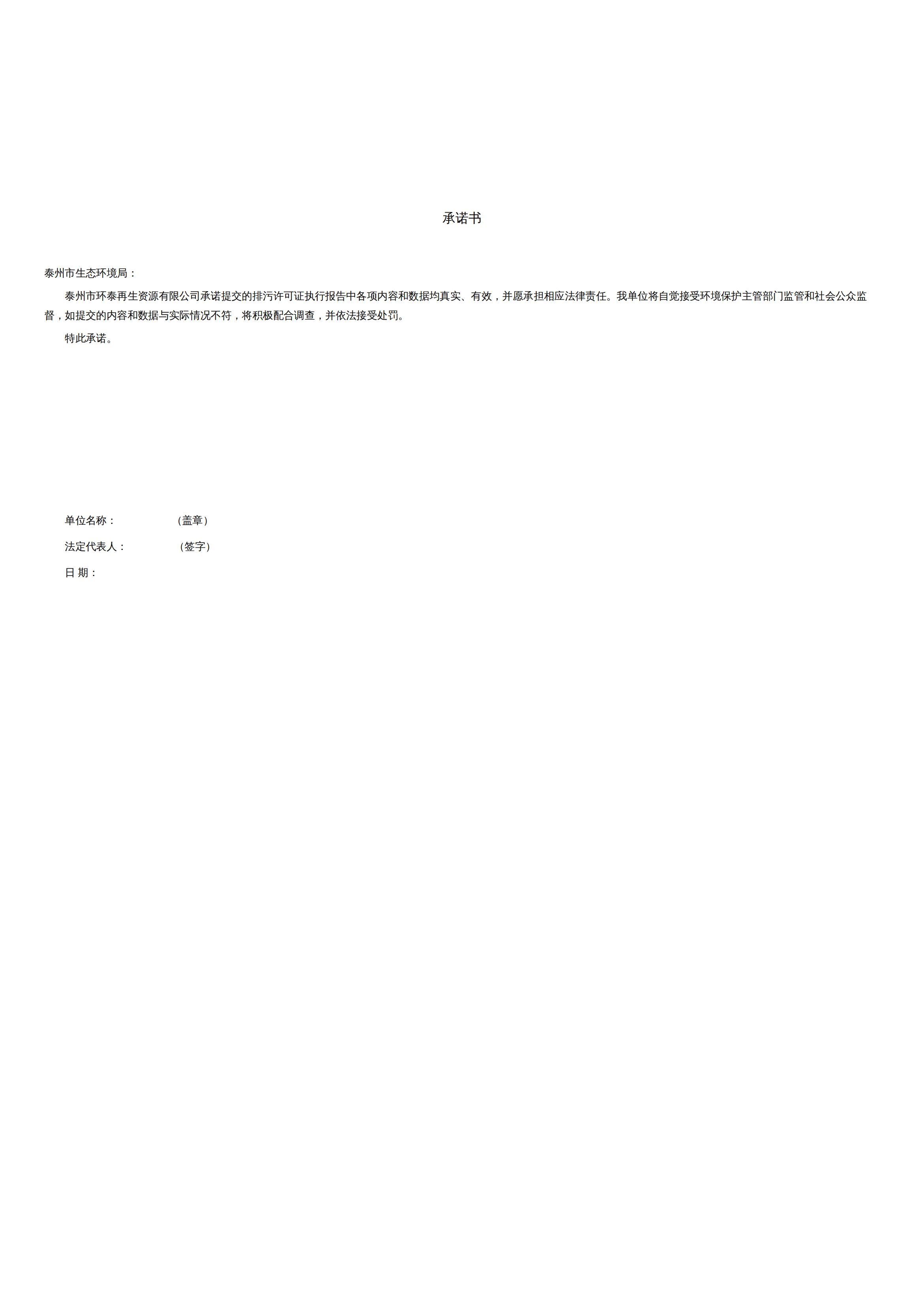 泰州市环泰再生资源有限公司排污许可证执行报告2023年报